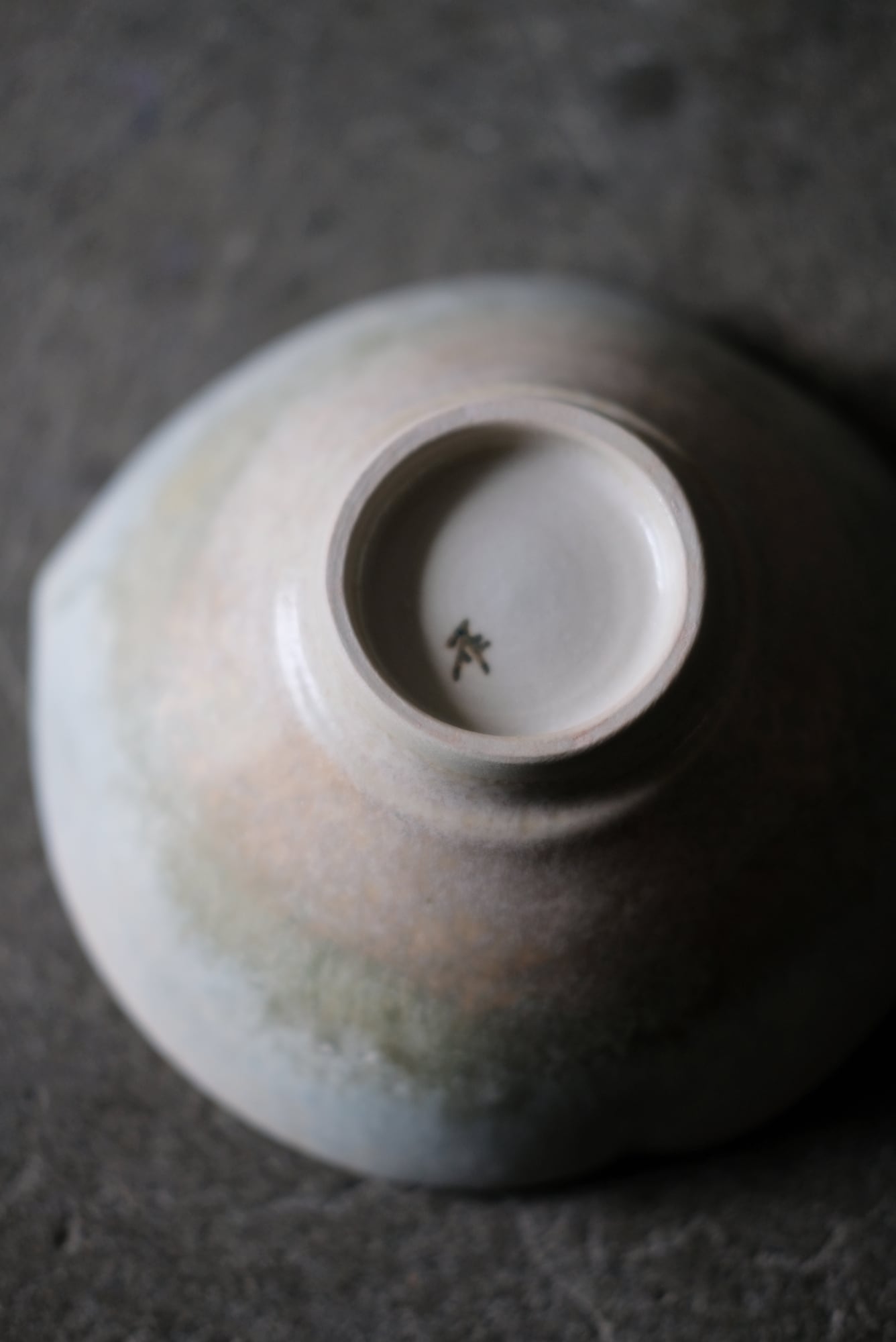 絵を描くように釉薬を重ね、偶然と必然が交わる中で多彩な表情が立ち現れる中園さんの器。流れ、にじみ、重なりあった色は、光の移ろいに呼応しながら、ひとつとして同じもののない景色をうつわの中に見せてくれます。