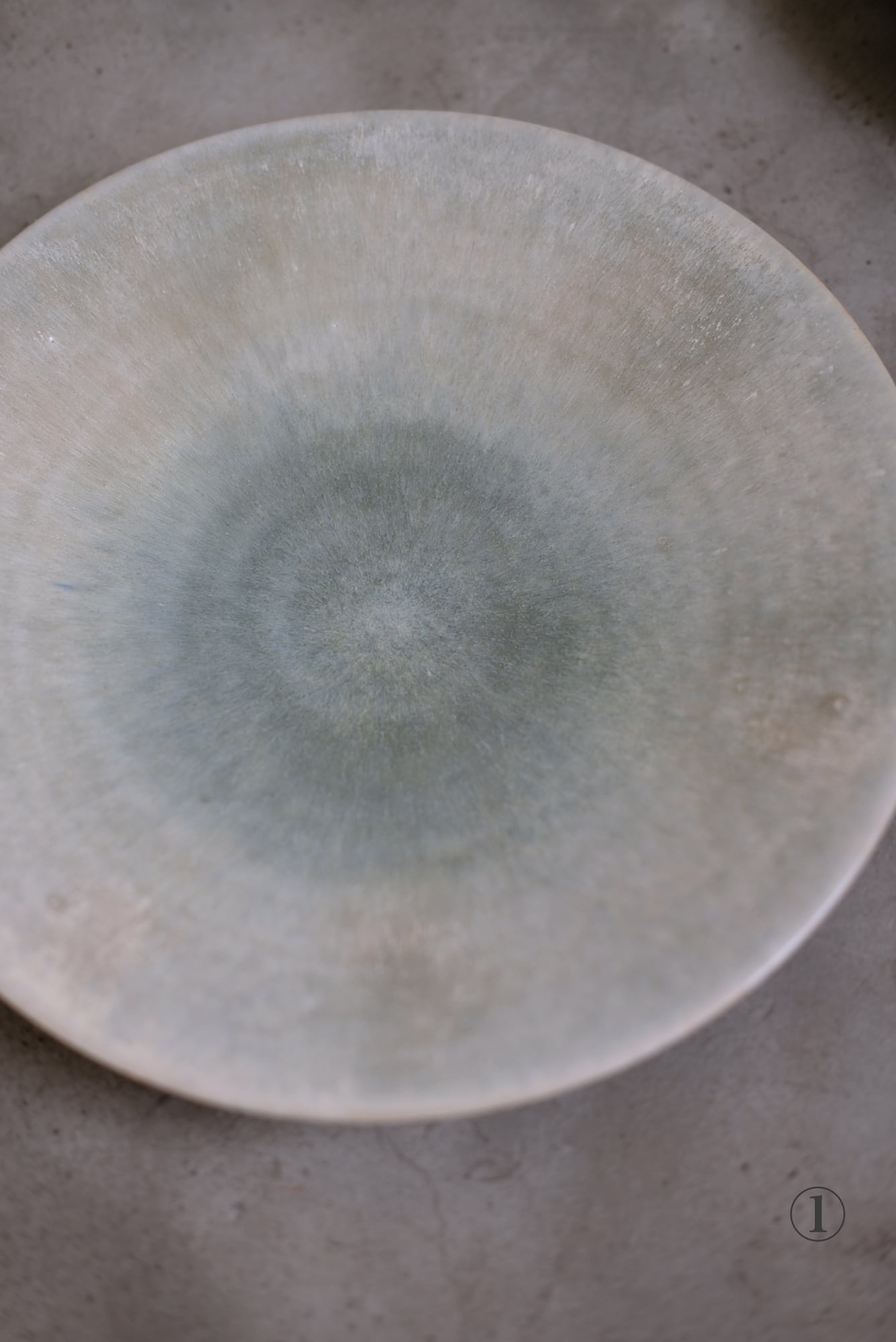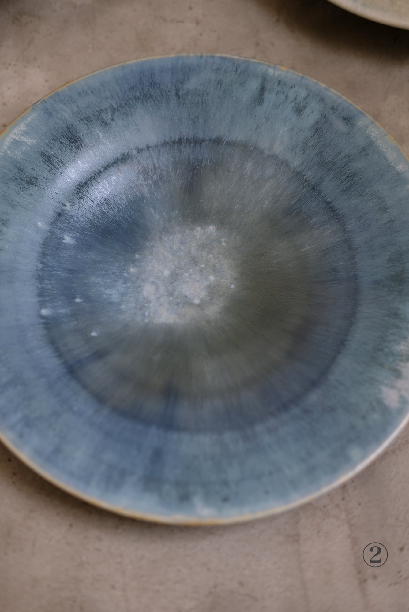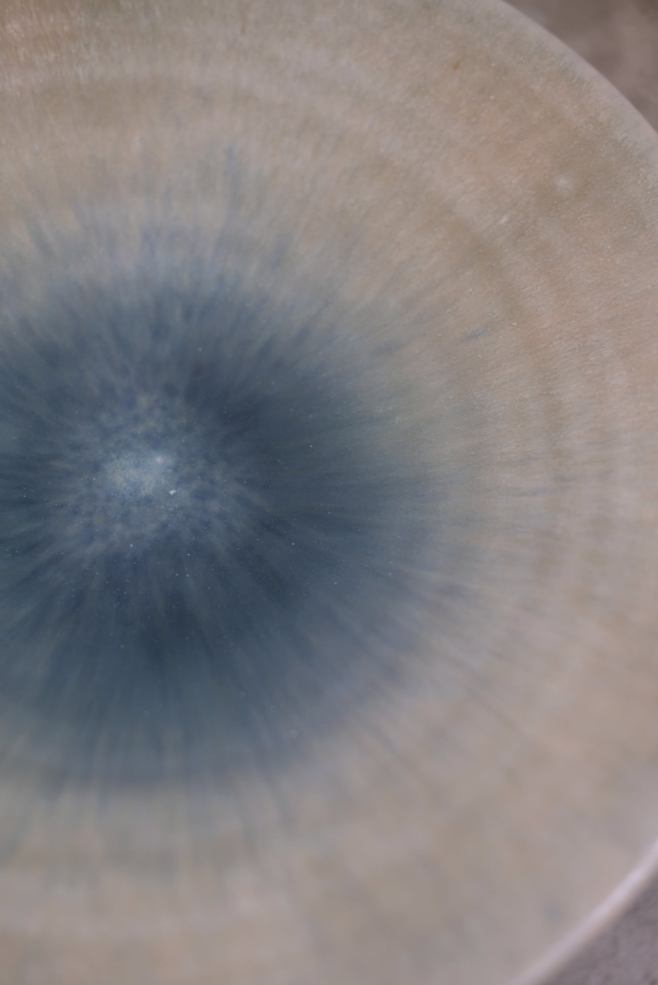 絵を描くように釉薬を重ね、偶然と必然が交わる中で多彩な表情が立ち現れる中園さんの器。流れ、にじみ、重なりあった色は、光の移ろいに呼応しながら、ひとつとして同じもののない景色をうつわの中に見せてくれます。