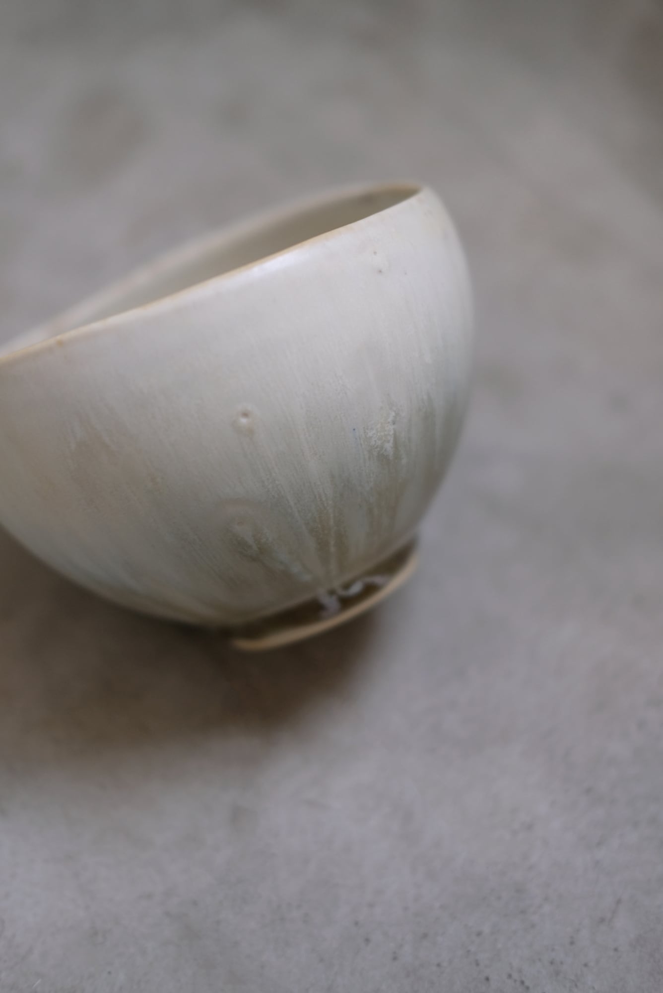 絵を描くように釉薬を重ね、偶然と必然が交わる中で多彩な表情が立ち現れる中園さんの器。流れ、にじみ、重なりあった色は、光の移ろいに呼応しながら、ひとつとして同じもののない景色をうつわの中に見せてくれます。